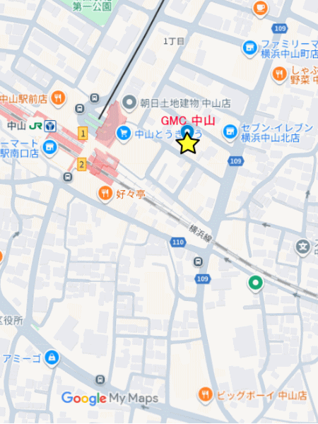 横浜線 中山駅 北口を出て、東急ストアへ向かって進んでください。